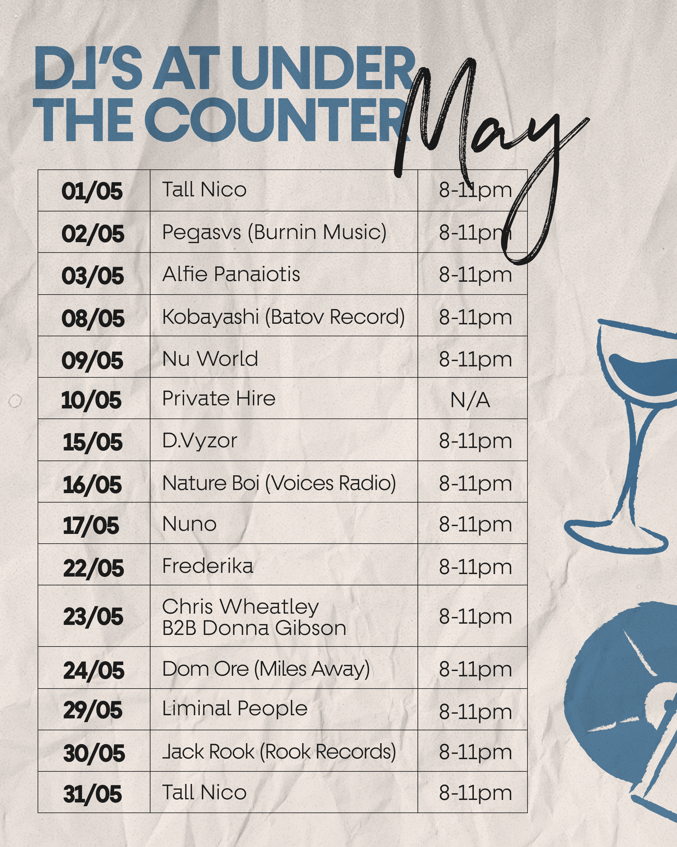 EVENTS HIRE ONLYunder the counter